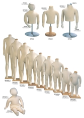 Voll beweglich. Kurzform. Optional Ständer, Hutträger und Kopf erhältlich. Kataloge unter "Kindertorsen -> Unsere Flexiblen" zum Download !